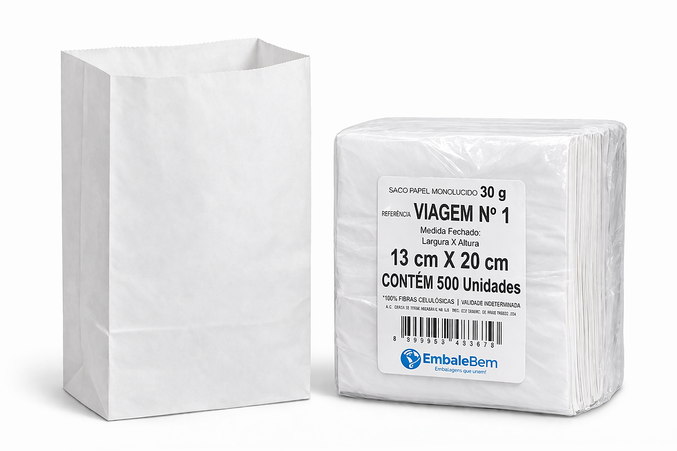 Saquinho de Papel Branco Viagem nº 1 – 13 x 20 cm – Pacote com 500 Unidades